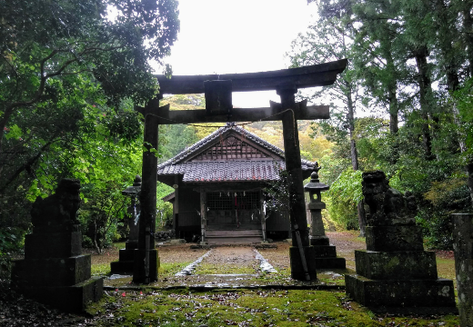 鳥居の脇には「天保十五辰」と書かれた手水鉢がある。少なくとも江戸時代までは遡る歴史がありそうだ。昔は宇佐に抜ける塚地坂トンネルもなかったので、浦ノ内湾に行くのに、横瀬山〜大峠を経る尾根道が利用されていたのではなかろうか。