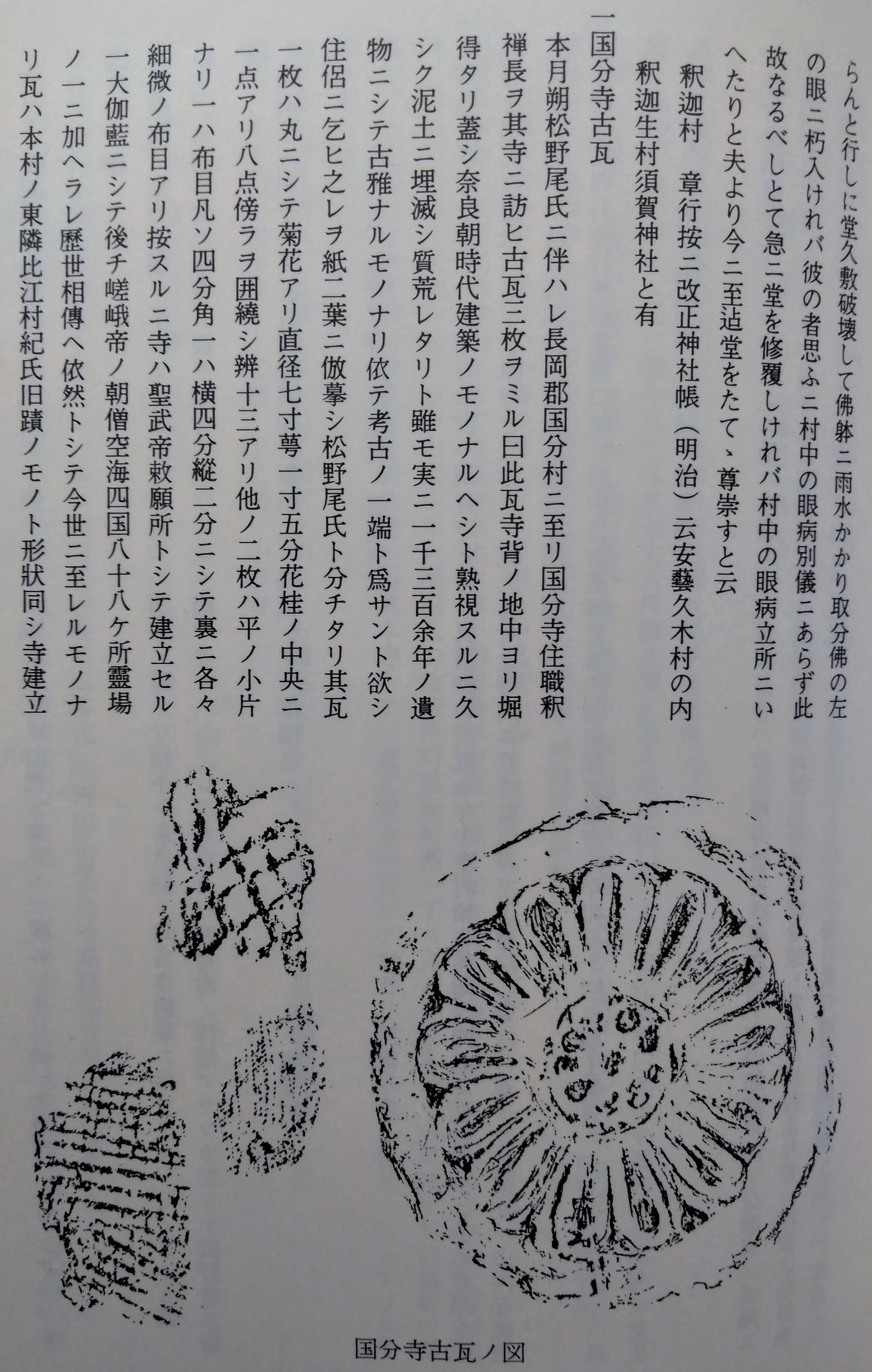 実は既にブログ内で紹介していたのだが、13弁菊紋瓦が出土したのは長岡郡の国府付近、国分寺跡からである。「其瓦一枚ハ丸ニシテ菊花アリ 〜 辨十三アリ」と『皆山集』にはっきり記録されているではないか。