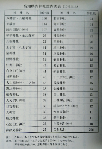 高知県のいくつかの住吉神社が浮かんだが、「資料を見てみないとはっきりは分かりません」と答えた。多いような、少ないような漠然としたイメージしかなかったが、『鎮守の森は今』(竹内荘市著、2009年)を開けば、神社数上位のランキング表があったので確認できると踏んでいた。
